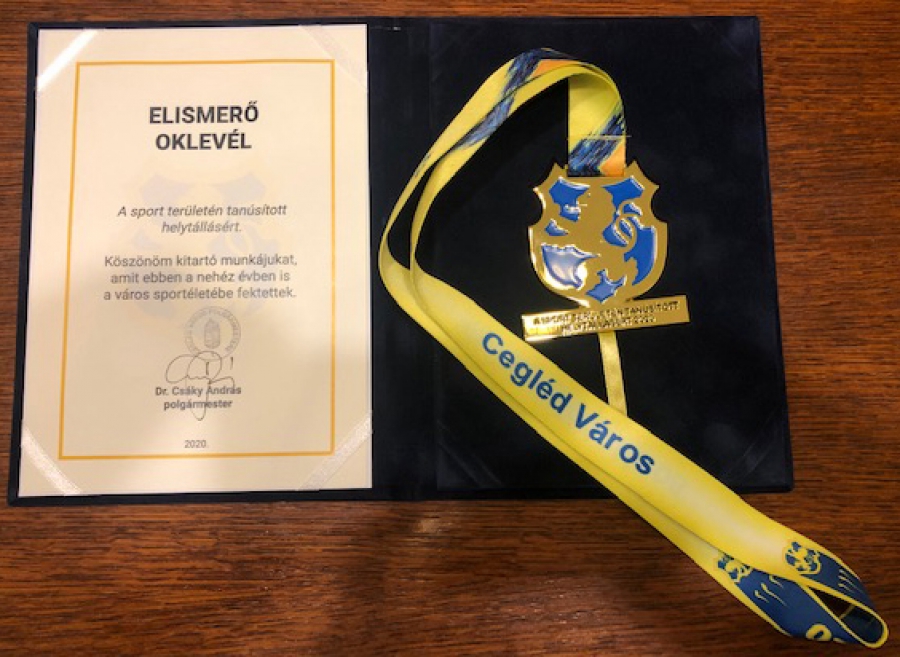 Egyedi érmeket és okleveleket adtak át Cegléd nagyobb létszámú sportegyesületeinek, szakosztályainak. Városunk önkormányzata ezzel szeretné elismerni az idei, nehéz évben végzett kimagasló munkát. Az elismeréseket Hegedűs Ágota alpolgármester és Kőházi Ádám városi sportkoordinátor adta át többek között nekünk is.